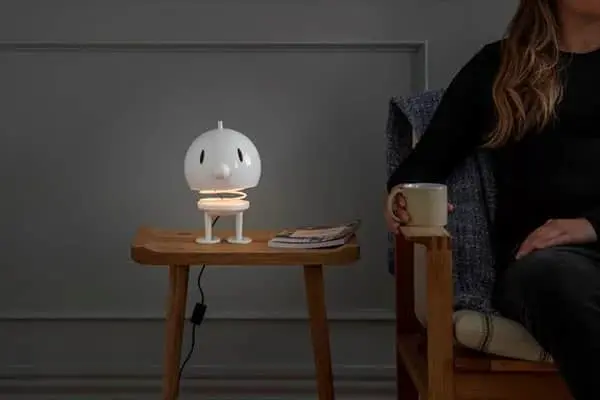Den kendte og elskede hvide Hoptimist har fået vokseværk og er blevet til en bordlampe. Hoptimisten ligner stadig sig selv – den er bare 23 cm høj og er blevet udstyret med en LED strip. Stil Hoptimist Bumble lampen på sengebordet eller på børneværelset og lad den sprede glæde og hygge hver dag.