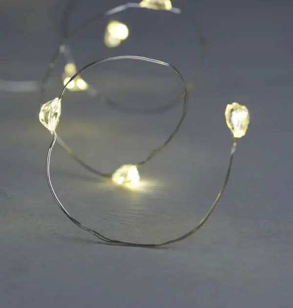 Sirius Maggie LED lyskæde har 40 klare LED lys på en 3,9 meter lang kæde, der er fremstillet med små, fine sølvtråde, der giver lyskæden et feminint udtryk.